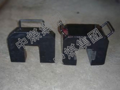 撞轨器由主体、垫板、斜铁及挂钩等结构件组成,其中主体、垫板、斜铁均由高强度合金钢整体锻造而成,并经调质热处理,因而,撞轨器整体强度高。